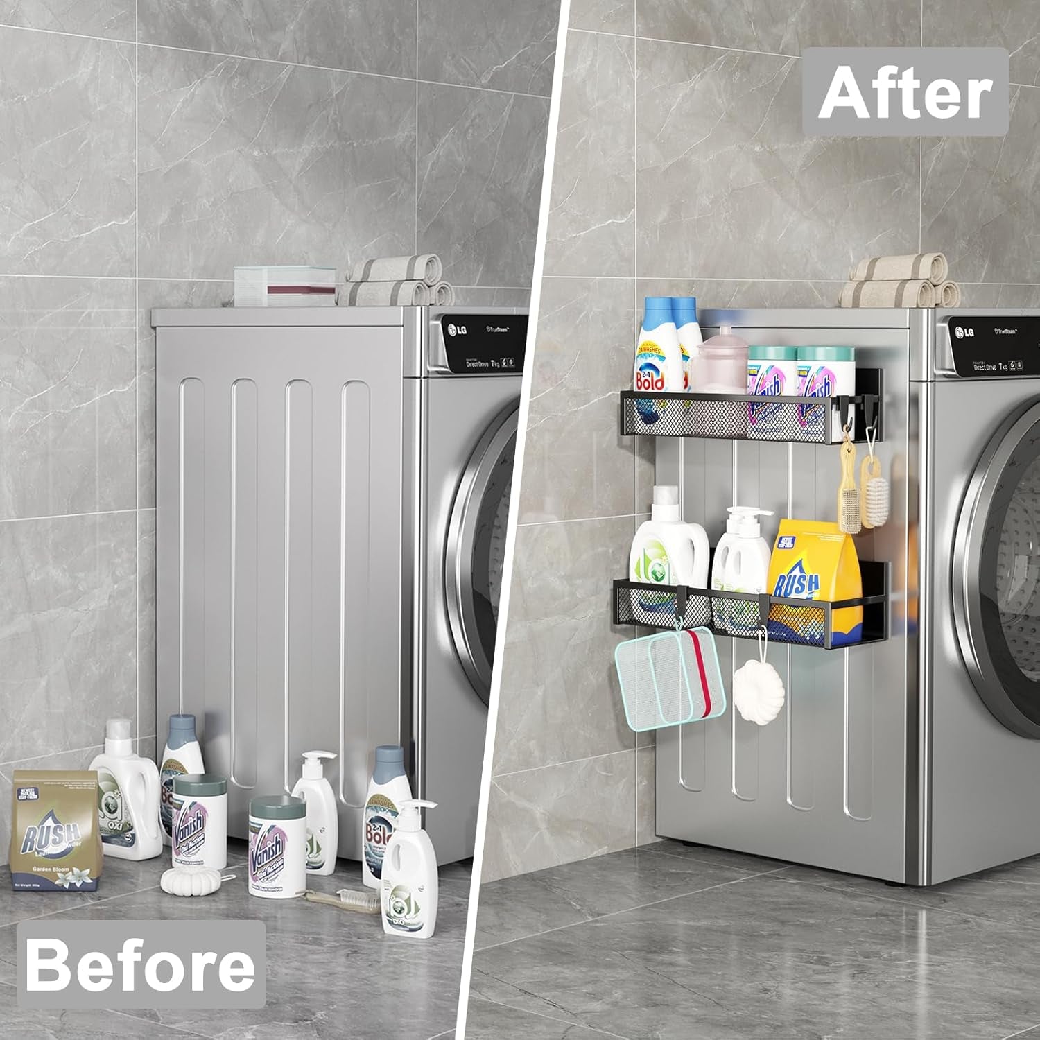 Magnetic Spice Rack for Refrigerator, 2 Pack Magnetic Shelf, Fridge Magnet Organizer with Moveable 4 Hooks, Magnet Fridge Shelf for Kitchen Organization and Storage (2 Pack)
